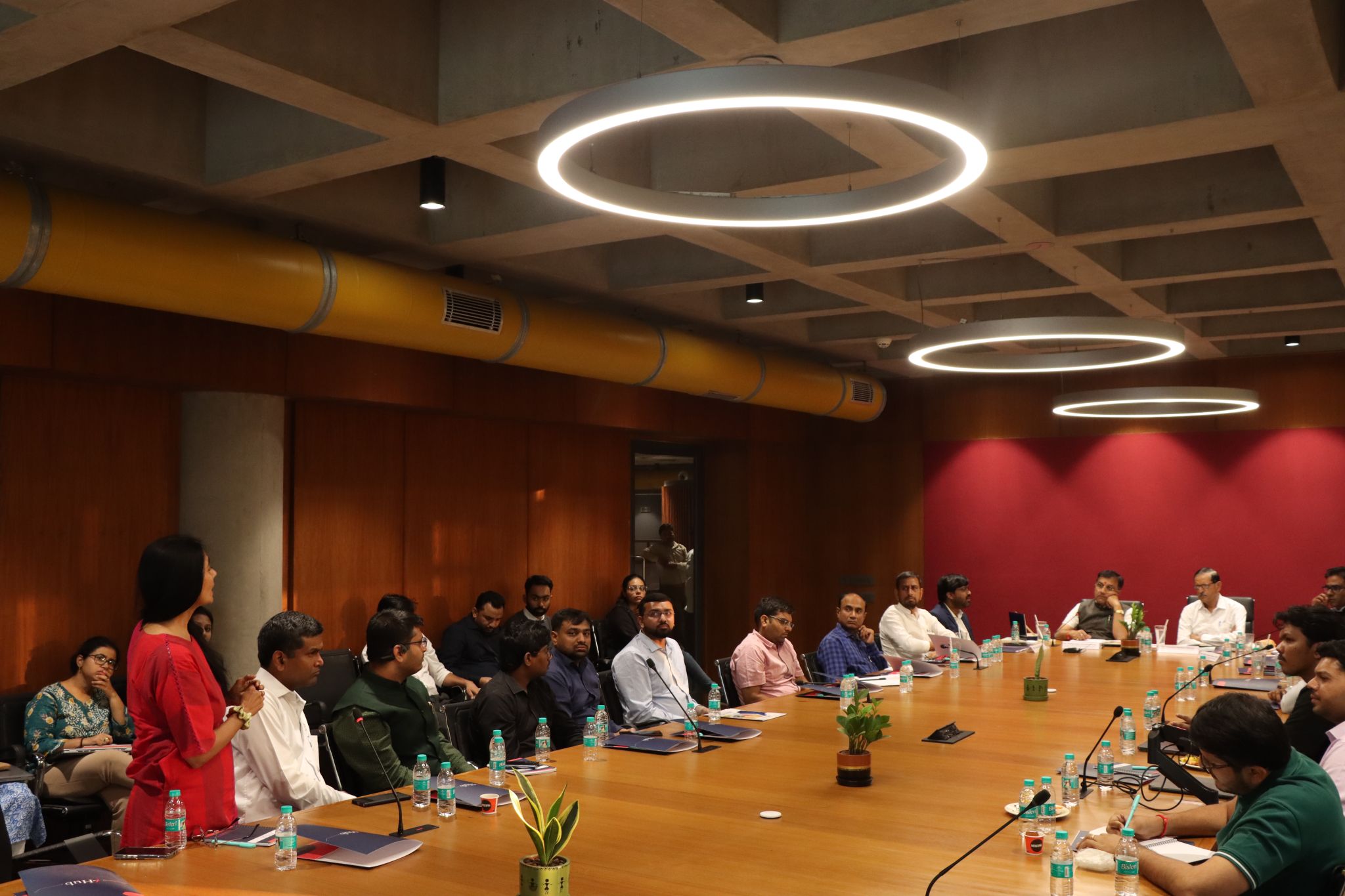 Through a roundtable discussion, the dignitaries were briefed by the CEO, i-Hub Gujarat, through a detailed presentation on i-Hub’s role as the PMU of the state’s innovation ecosystem. Operating on a hub-and-spoke model, i-Hub facilitates the journey of innovators from mind to market while strategically mobilizing resources from external stakeholders to strengthen and expand the ecosystem. In addition, they were also briefed about the key initiatives, including the SSIP 2.0 policy, Startup Srujan Seed Support (S4), and the comprehensive support extended to innovators through grant funding, infrastructure, and soft support, enabling over 720+ startups to progress. The discussion also highlighted that four additional regional centers will be replicated nationwide to extend similar support mechanisms and innovation frameworks. Further, the dignitaries interacted with 20+ startups across Healthtech, Agritech, Deeptech, manufacturing, and other emerging domains, providing them an opportunity to showcase their innovations. The visit was marked as a constructive engagement, indicating the government’s proactive role in supporting such initiatives.